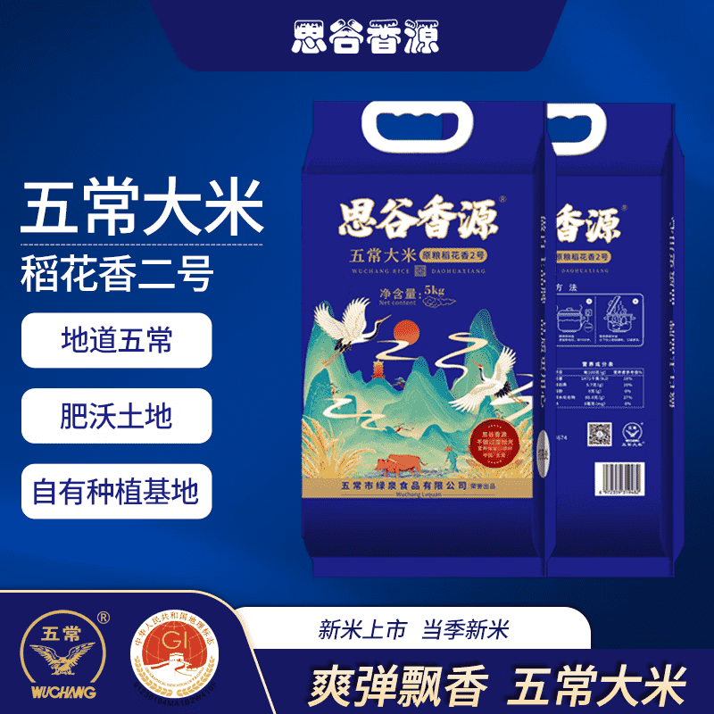 包邮-思谷香源 五常大米原粮稻花香2号大米5kg真空手提包装10斤装【新疆西藏不发货】