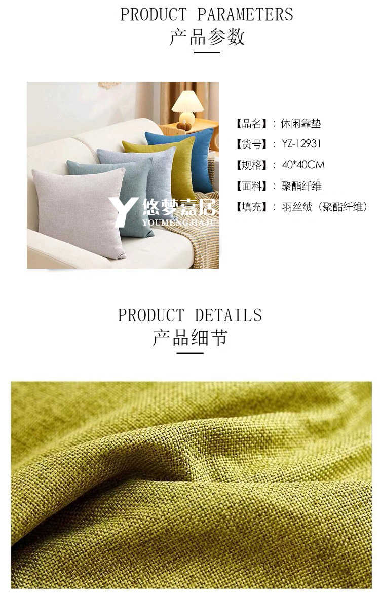 包邮-悠梦嘉居 休闲靠垫抱枕环保卫生抗菌除螨可适用与多个环境汽车内办公室沙发上休闲旅游YZ-12931(40*40cm)【新疆/西藏不发货】