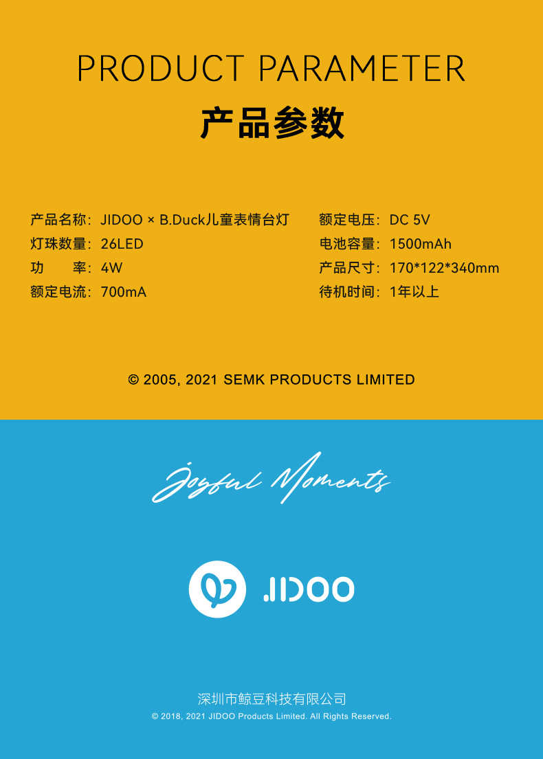 鲸豆JIDOO X B.duck 儿童表情台灯 JD055L-BD【新疆西藏不发货】