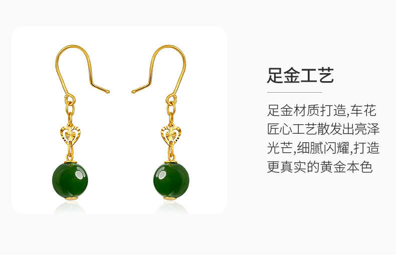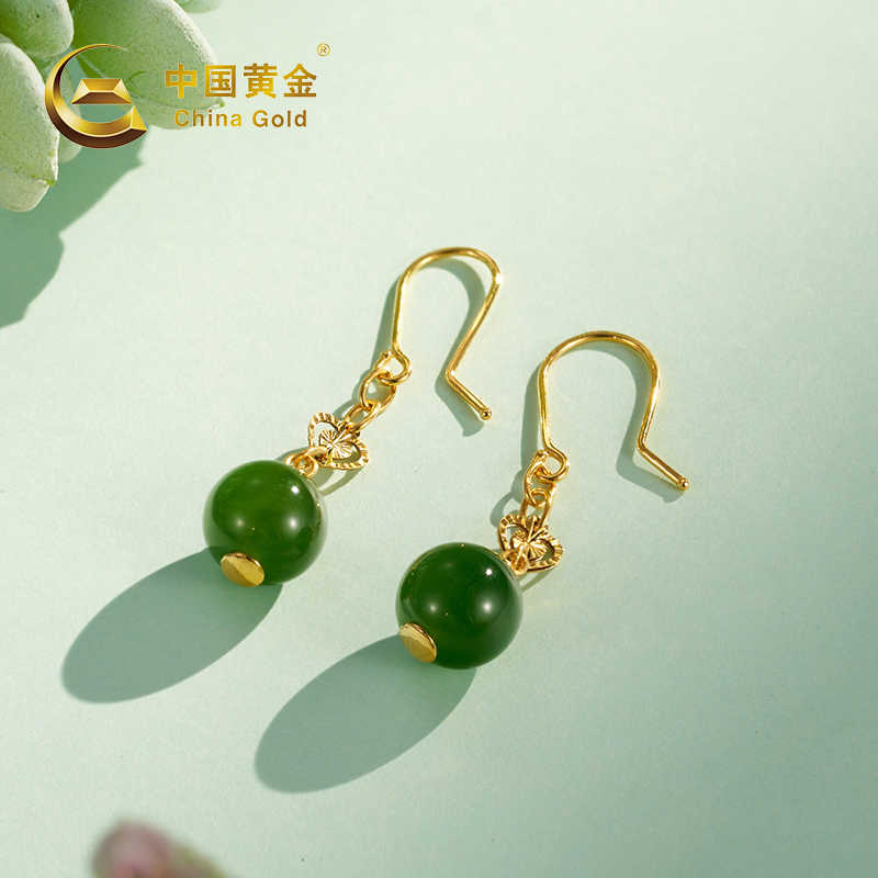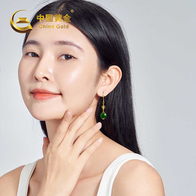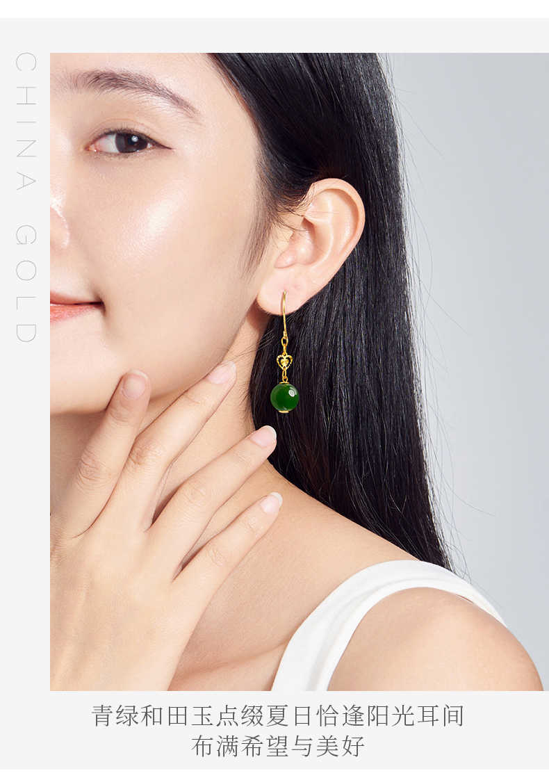 包邮-中国黄金足金镶和田碧玉耳坠ZGHJ220752 支持线下验货【新疆 西藏不发货】