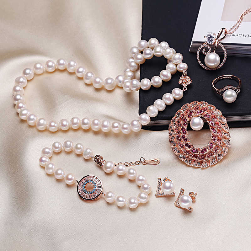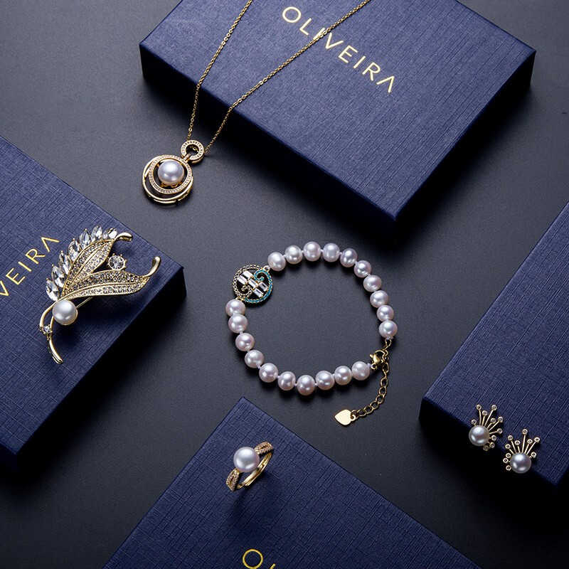 奥利维拉 天然淡水珍珠 六件组合套装 项链 手链 耳饰 戒指 胸针 吊坠 礼盒包装Q7/Q16