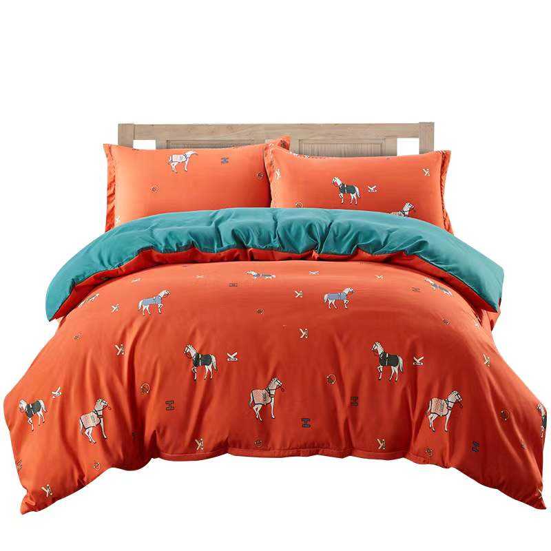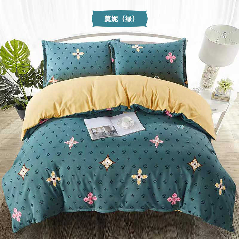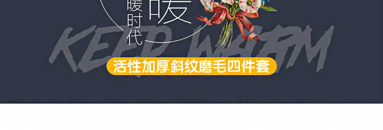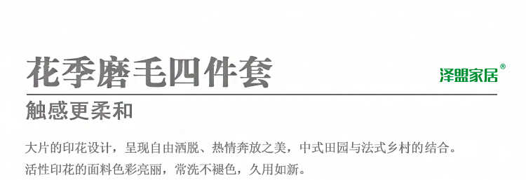 泽盟家居家纺 磨毛加厚床上用品四件套 套件花季/欧臣(橙色)/莫妮(绿)三种花型可选 活性印染 2m*2.3m