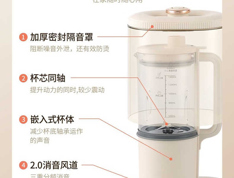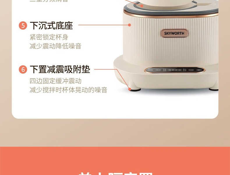 创维 静轻音破壁机降噪家用豆浆机加热全自动榨汁机搅拌机辅食机早餐机米白P345 可预约1.4L家庭必备