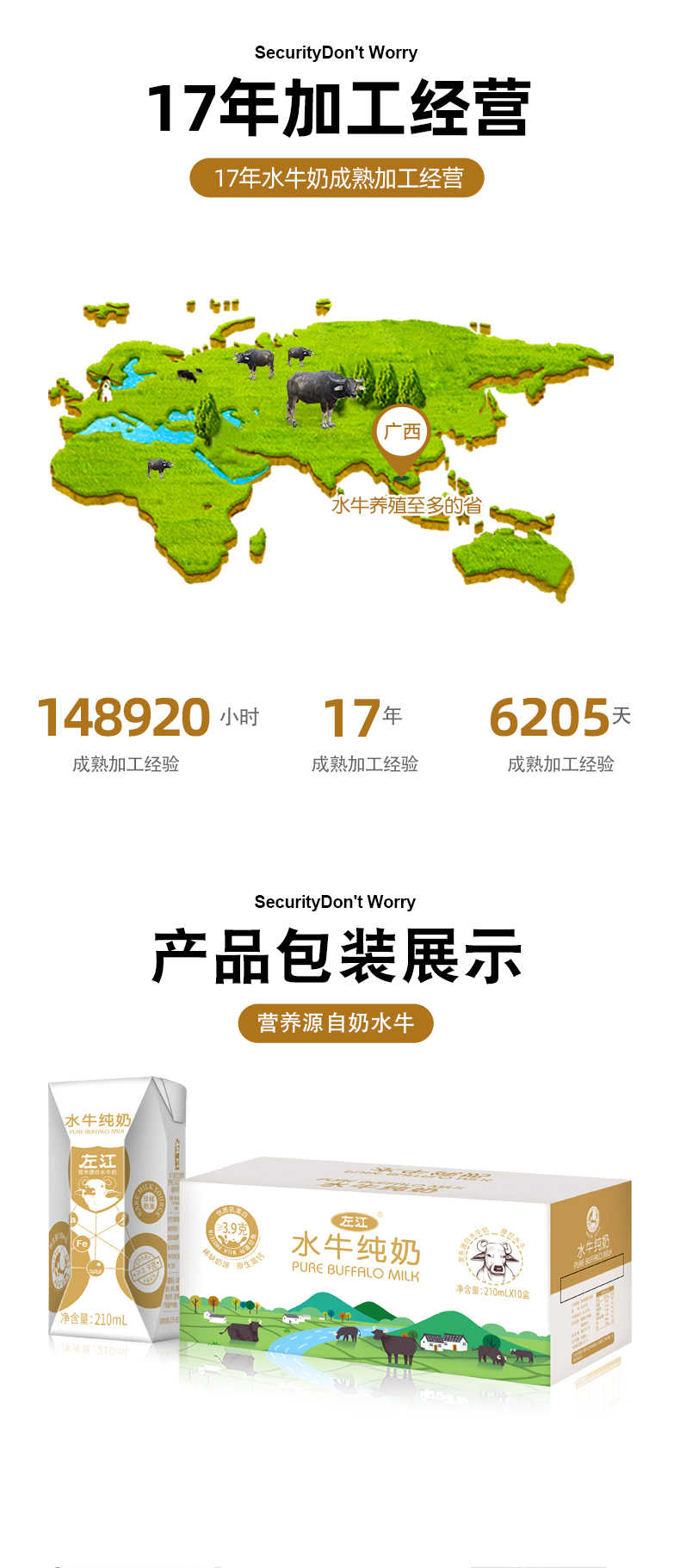 包邮 T-左江水牛奶 原味纯水牛奶210ml*10盒 整箱学生孕妇网红营养早餐 会结奶皮的牛奶 双皮奶 纯奶210ml*10盒 1提