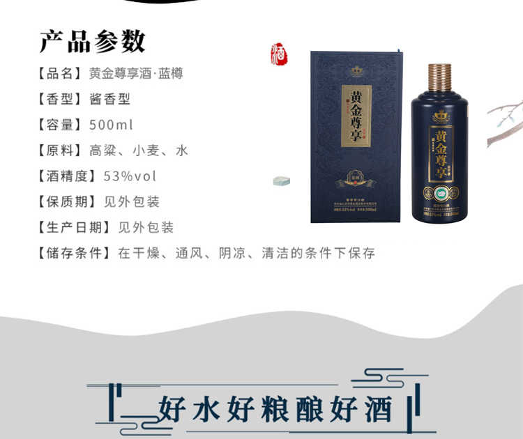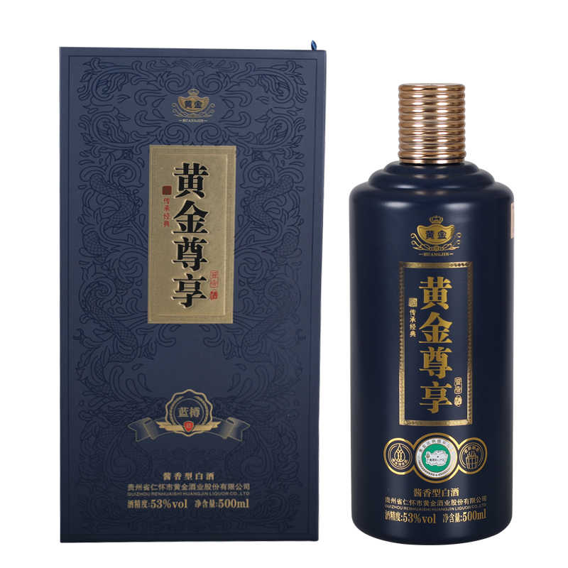 黄金尊享 蓝樽 53度酱香型白酒 纯粮酿造珍藏酱香 500ml/瓶 单瓶礼盒装