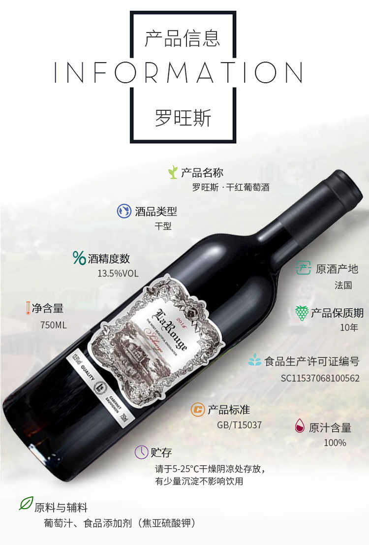 罗旺斯赤霞珠干红葡萄酒 红酒 750ml * 6瓶