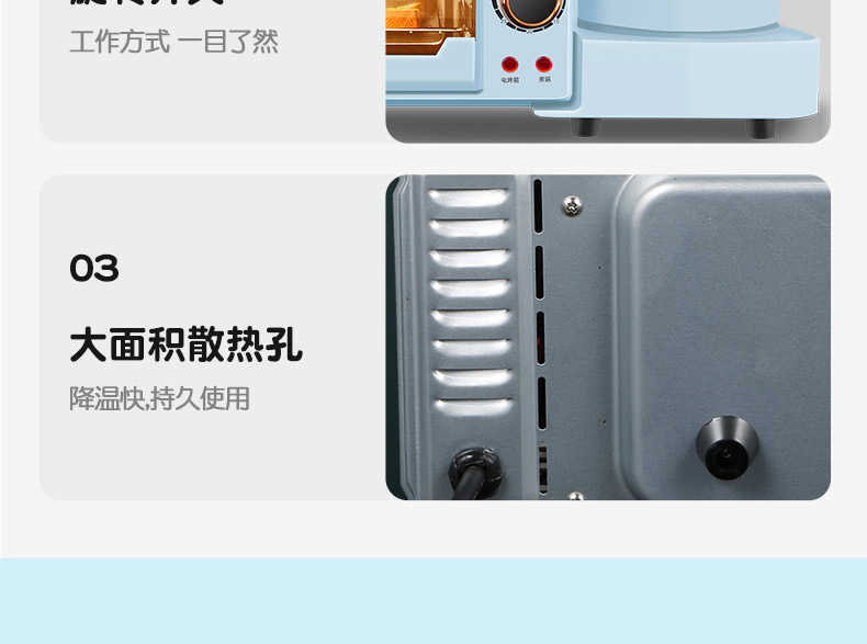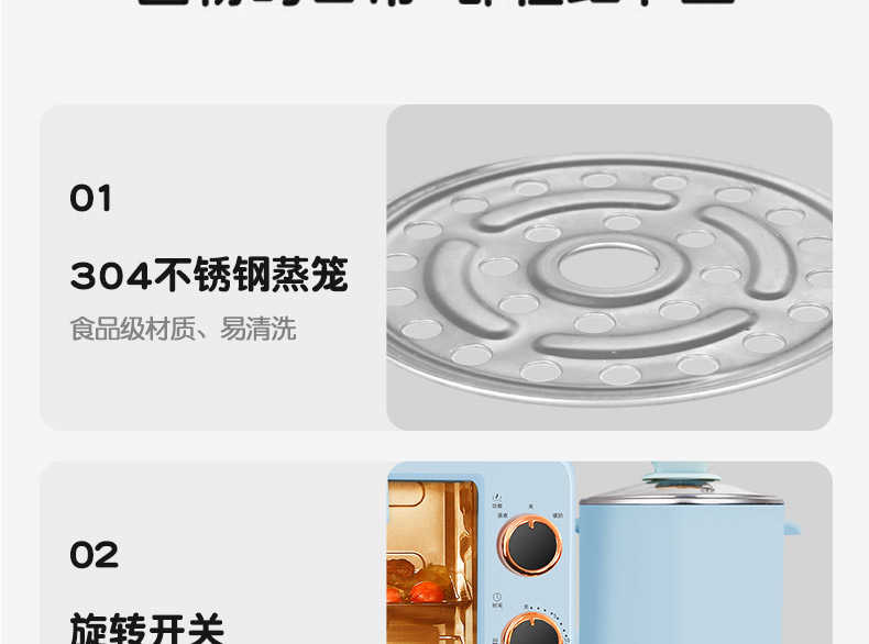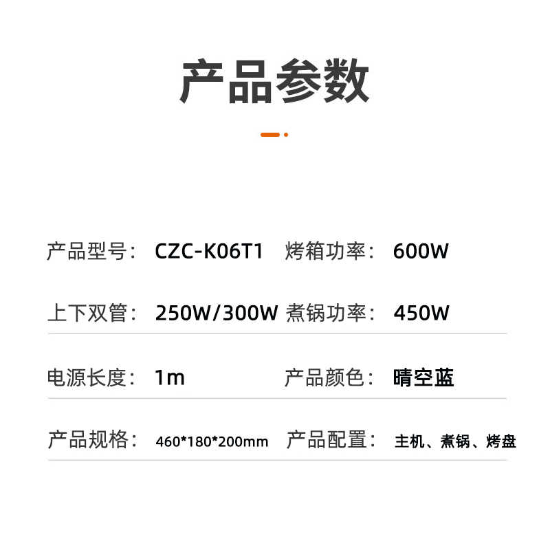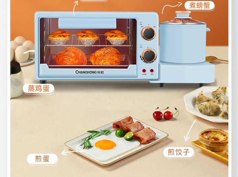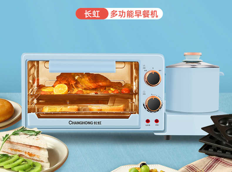 长虹早餐机多功能电烤箱家用小型迷你烤箱电煮锅一体多用途烤箱 多用途电烤箱-【天蓝】CZC-K06T1