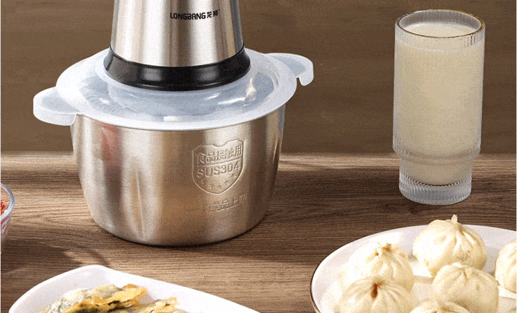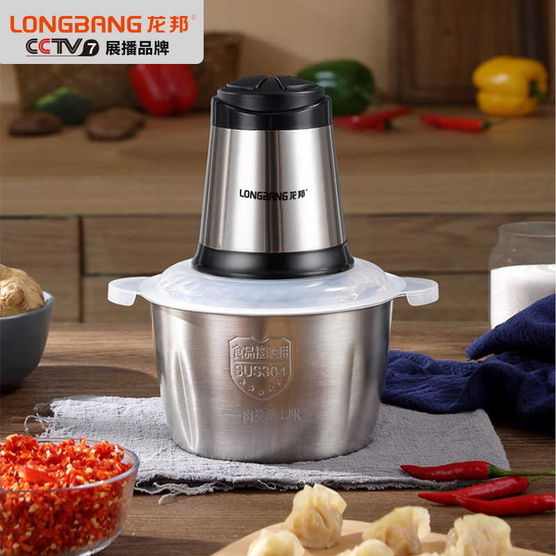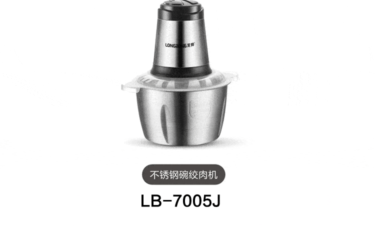 龙邦家用多功能绞肉机料理机 不锈钢碗打肉饺子馅辅食机 2L容量 LB-7005J 新疆、西藏不发货