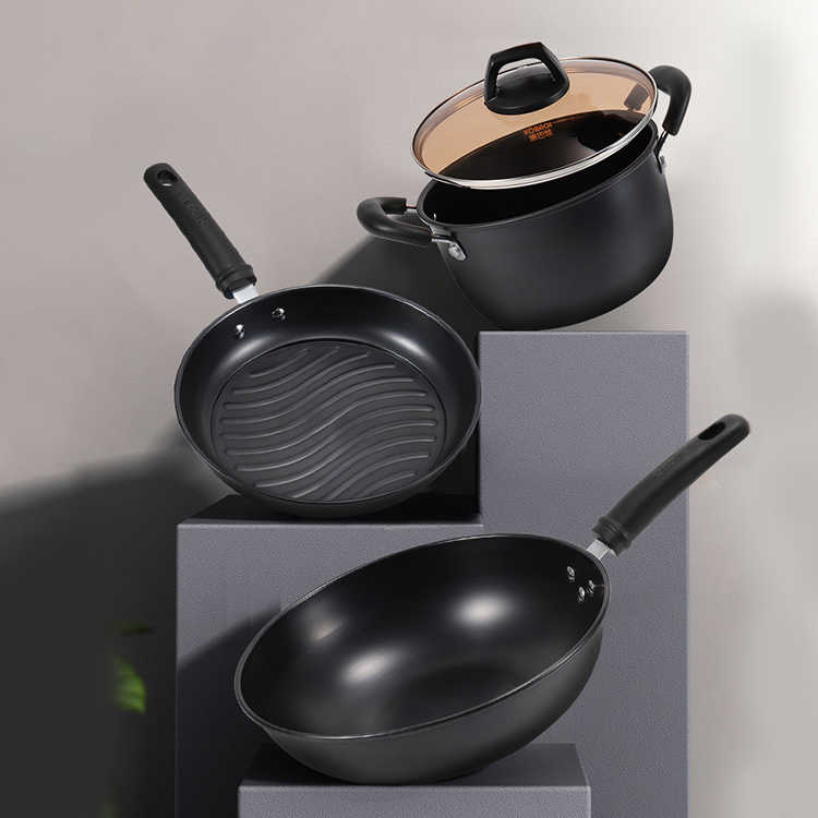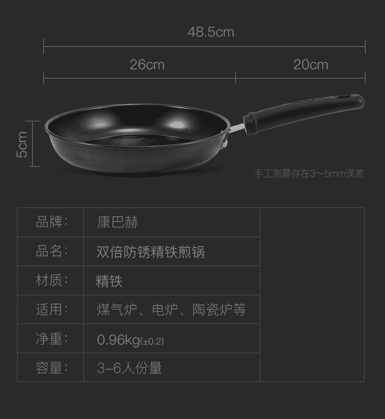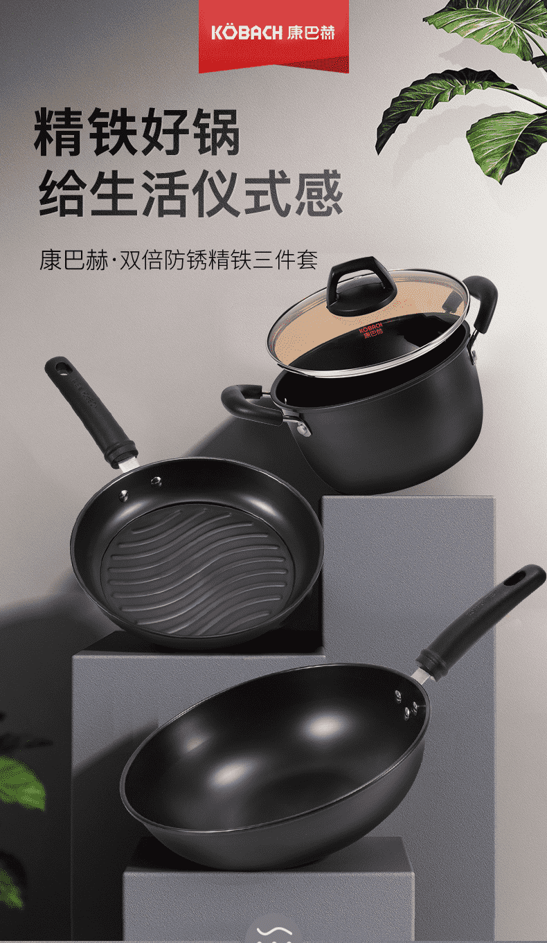 康巴赫双倍防锈精铁三件套 炒锅 炖锅 煎锅 双倍防锈三件套FXJT3 新疆,江苏,海南疫情停发 红色黑色两种颜色包装随机发货介意勿拍