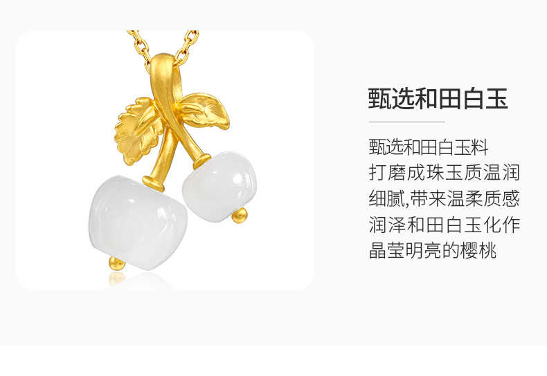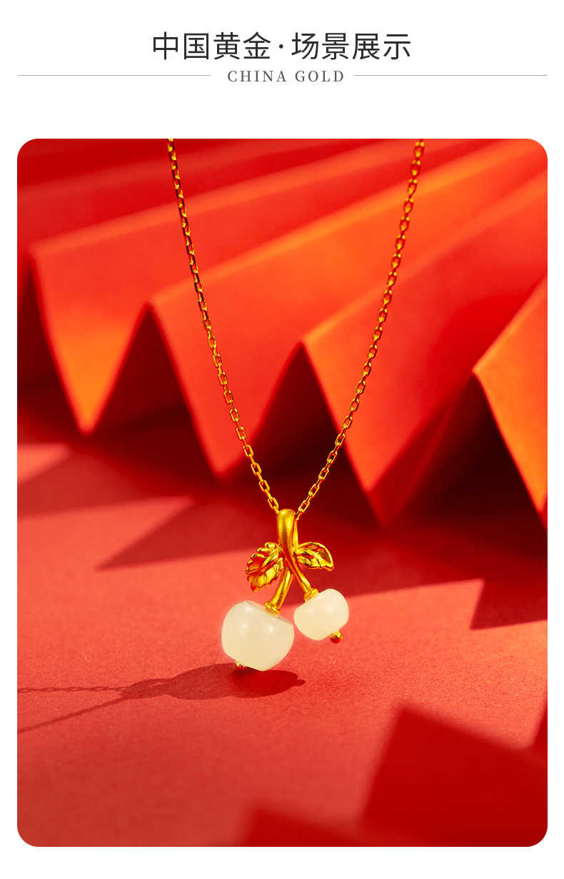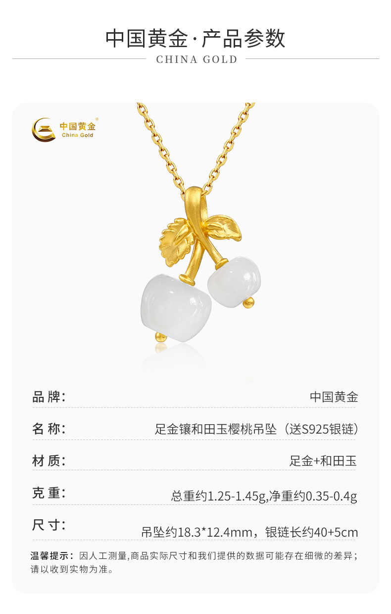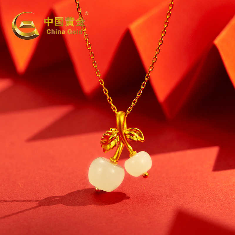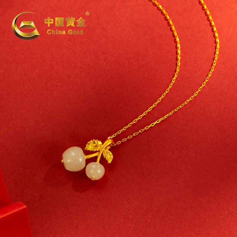 包邮-中国黄金足金镶和田玉樱桃吊坠(送S925银链)ZGHJ220775【新疆 西藏不发货】