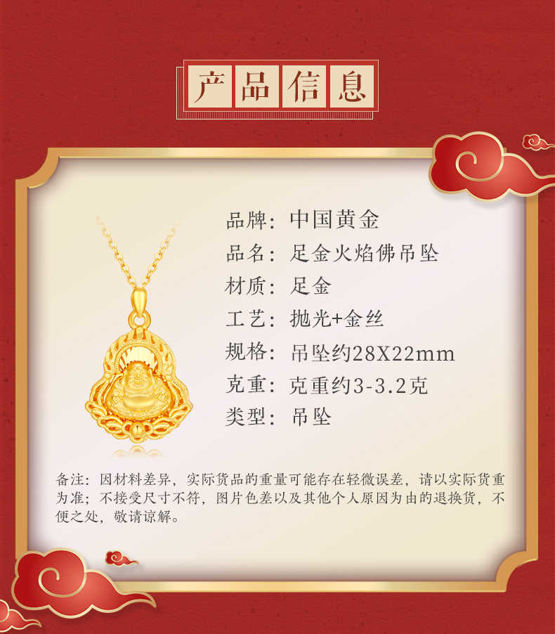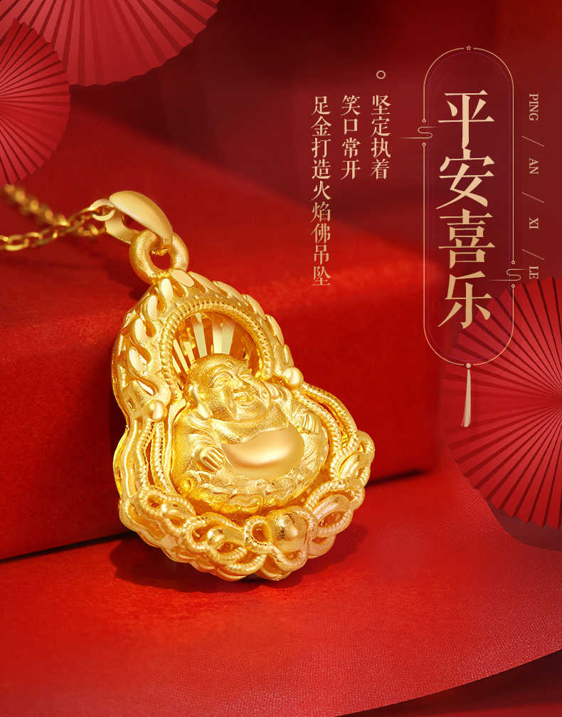 包邮-中国黄金足金火焰弥勒佛吊坠(送S925银链)ZGHJ212396【新疆 西藏不发货】