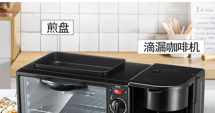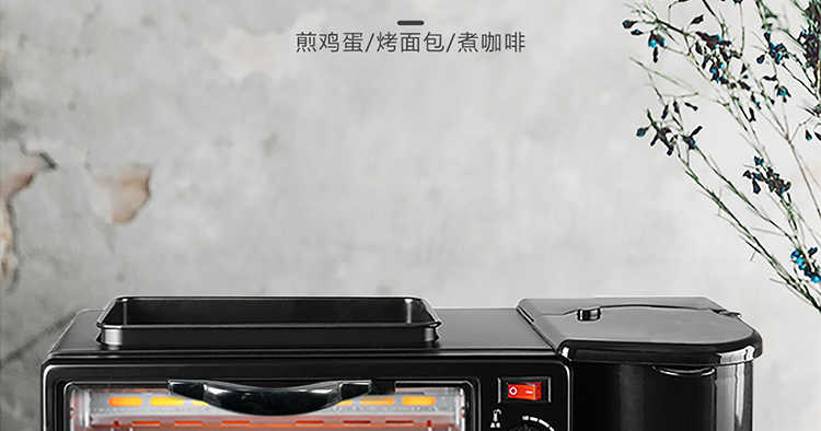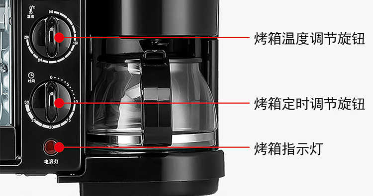 甜城 智能早餐机 多功能 电烤箱+咖啡机+煎烤盘三合一早餐吧烤面包机 烧烤煮同步 早餐吧-黑红两个规格可选TC-ZCJ30 升级款邮购包+彩盒