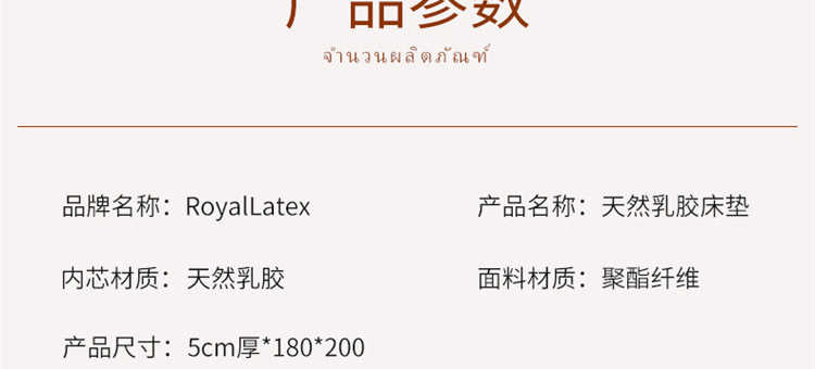 包邮 ROYAL LATEX泰国乳胶床垫原装进口七区独立天然床垫床褥5cm厚度 180cm*200cm