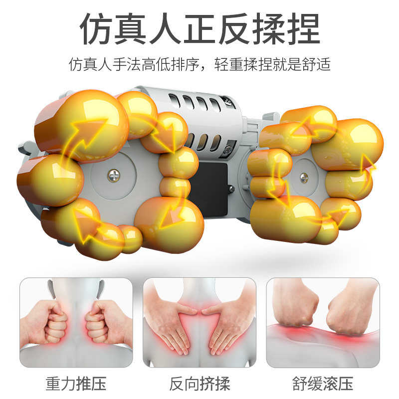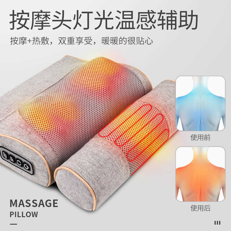 茗振多功能艾灸肩颈椎按摩器颈部腰部肩部颈肩多功能电动仪脖子枕头家用 浅灰色头MZ-158B-3