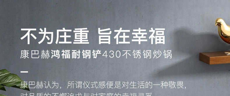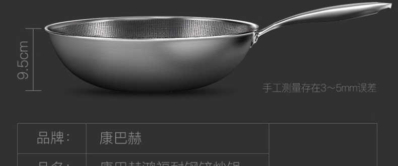 康巴赫鸿福耐钢铲不锈钢炒锅32cm平底少油烟炒菜锅电磁炉明火通用 鸿福耐钢铲炒锅32cm CGC32A1