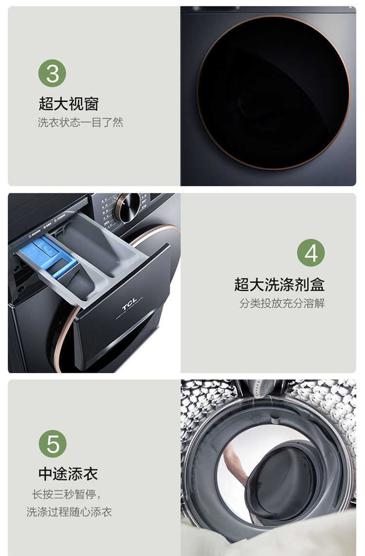 TCL全新升级DD直驱超静音10公斤真丝洗烘一体机大容量 G-G100F12C-HD星云蓝 滚筒洗衣机