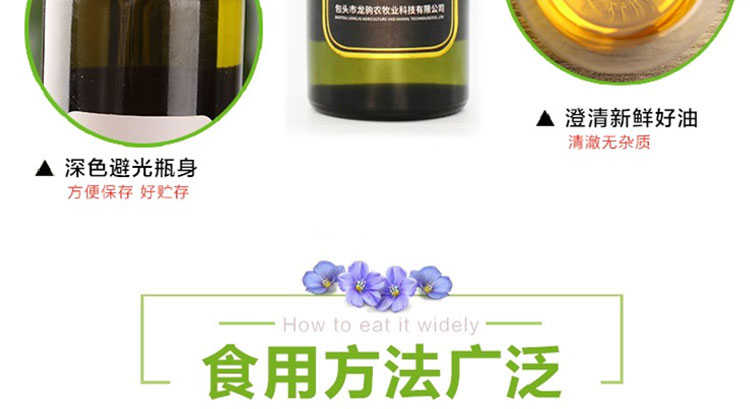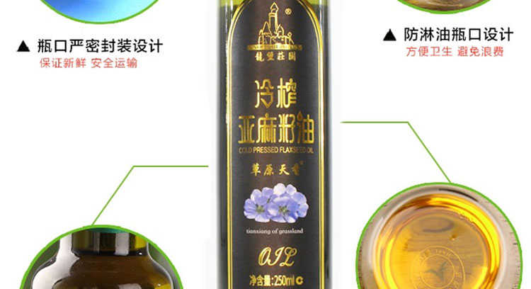 龙驹亚麻籽油 龙堡庄园 冷榨亚麻籽油内蒙草原特产单支 冷榨亚麻籽油 250ml