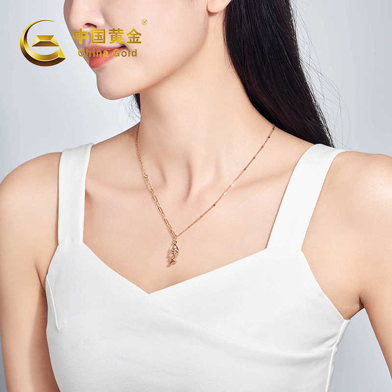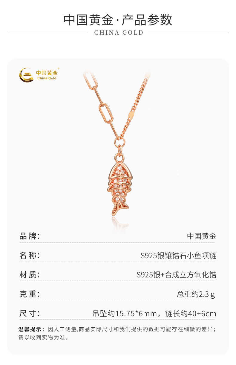 包邮-中国黄金S925银镶锆石小鱼项链ZGHJ220790【新疆 西藏不发货】