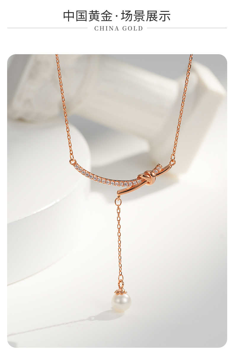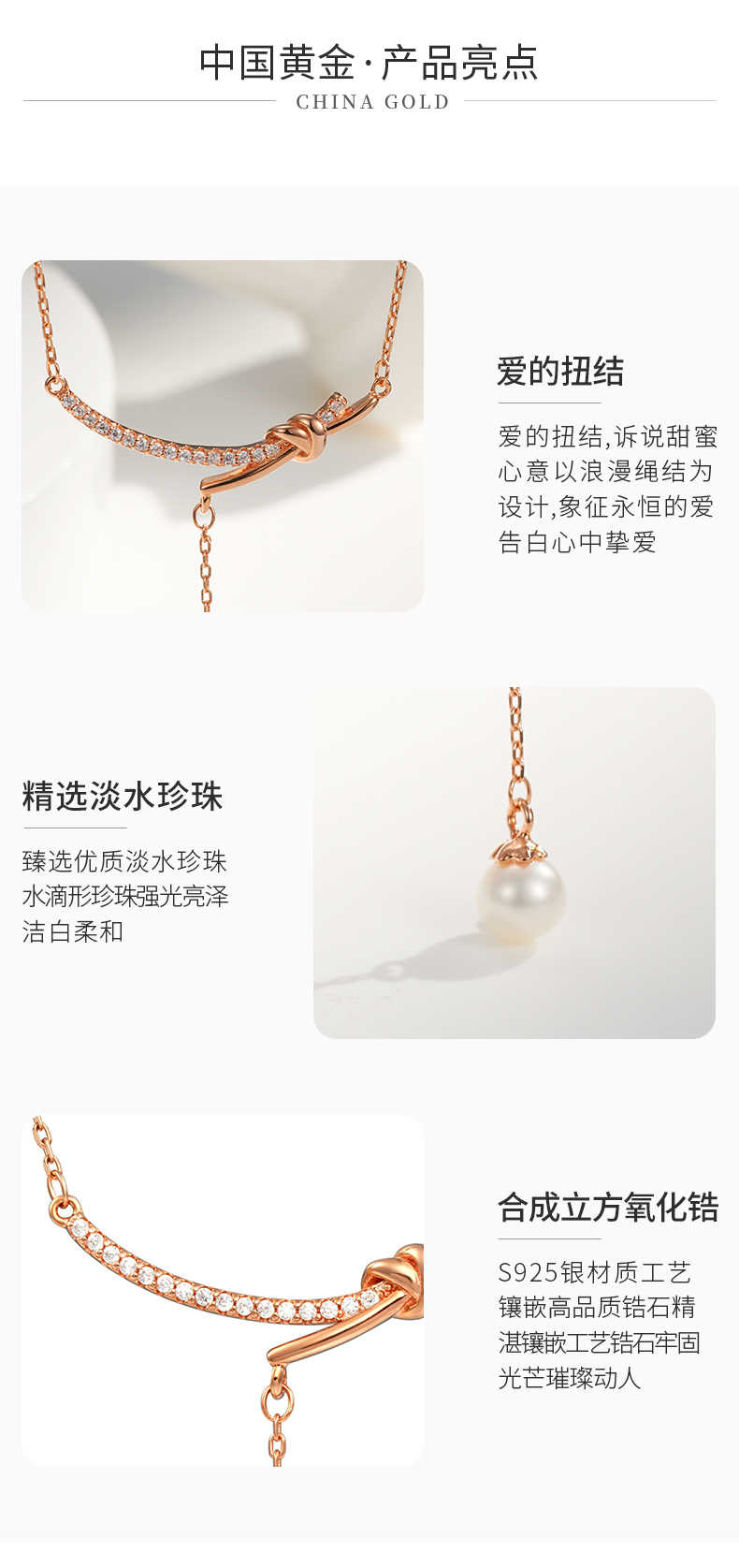 包邮-中国黄金S925银镶锆石心愿结项链ZGHJ220791【新疆 西藏不发货】