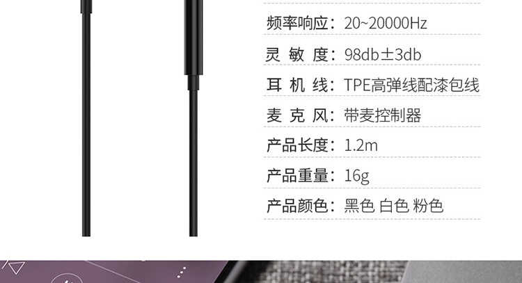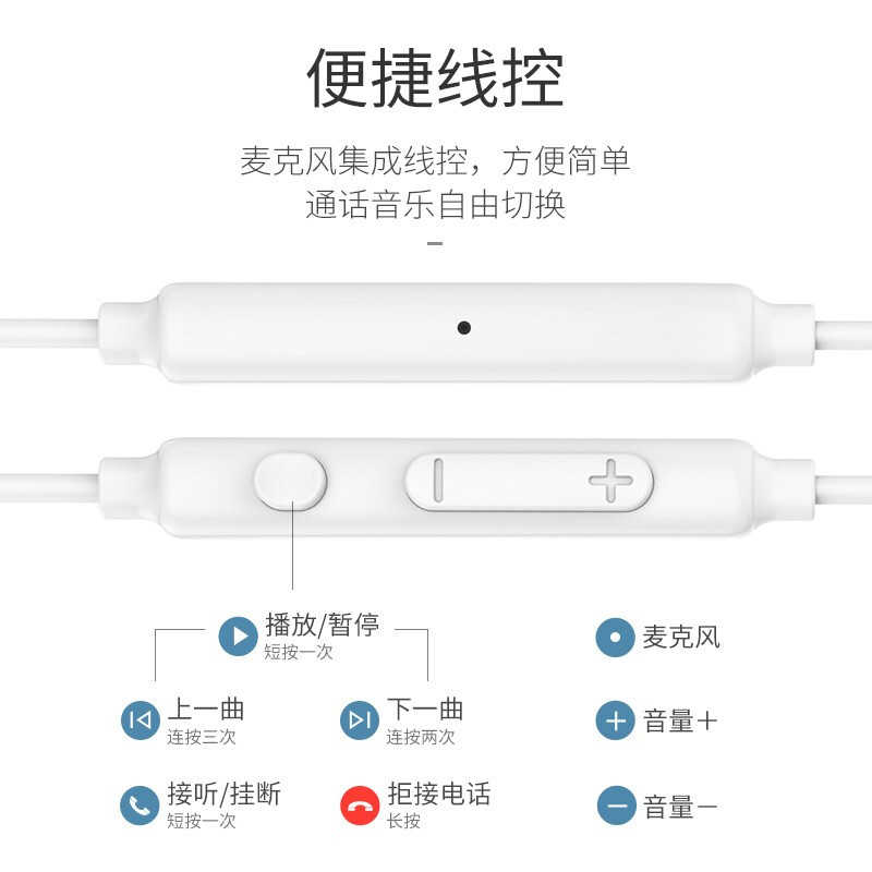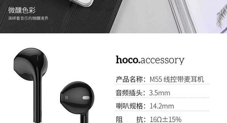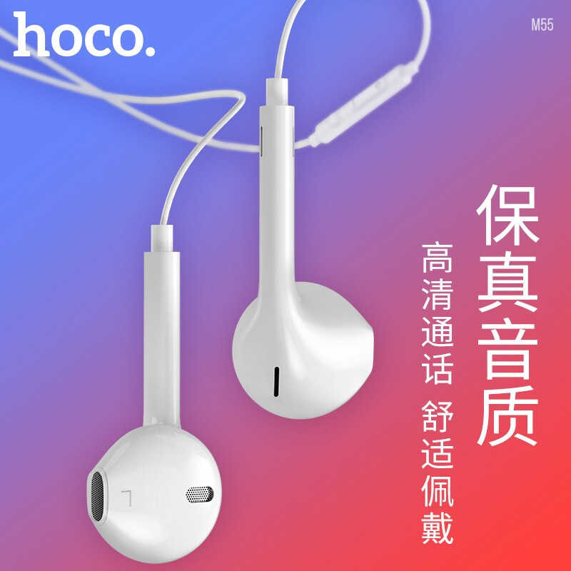 包邮-浩酷HOCO M55忆音线控带麦耳机 有线音乐耳机 拾音线控带麦立体声3.5mm调音耳机 白色