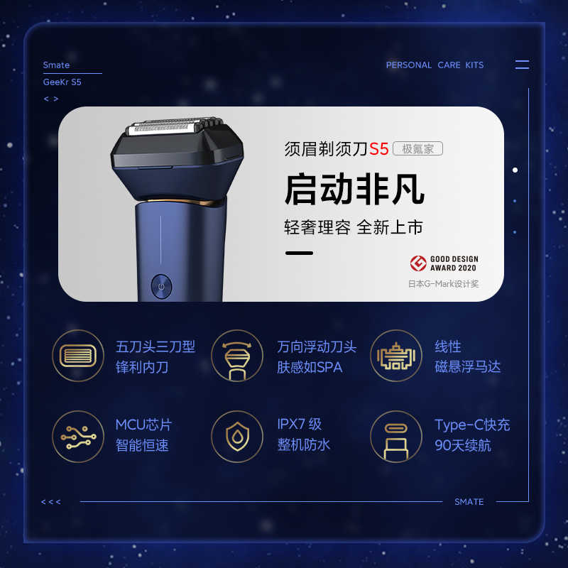 包邮-须眉剃须刀S5男士电动剃须刀套装超长续航防水刀头礼盒装极氪家套装