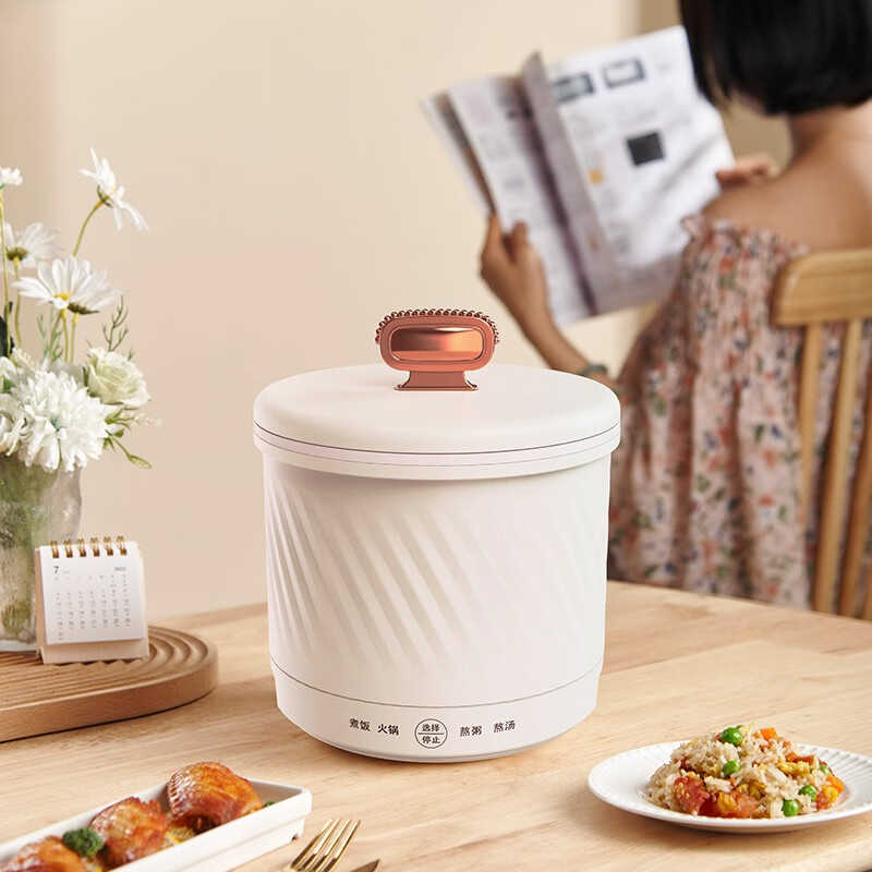 【迷你便携 走到哪吃到哪】佳斯多电火锅家用电炒锅韩式多功能多用途电热锅涮锅1.5L电锅不粘电煮锅(少女粉)