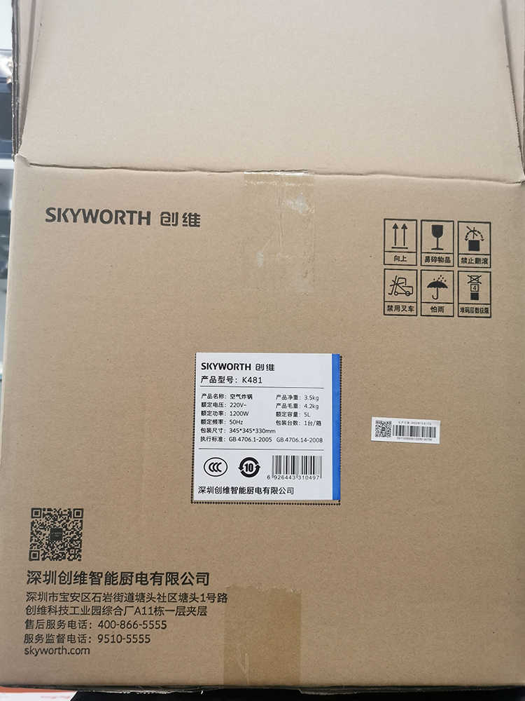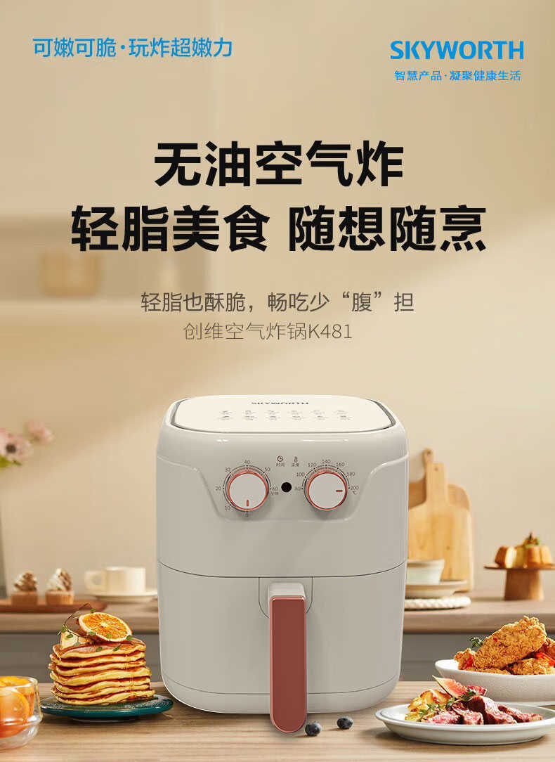 创维/Skyworth新款空气炸锅5L大容量家用多功能无油烟K481 米白