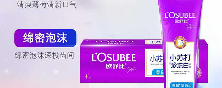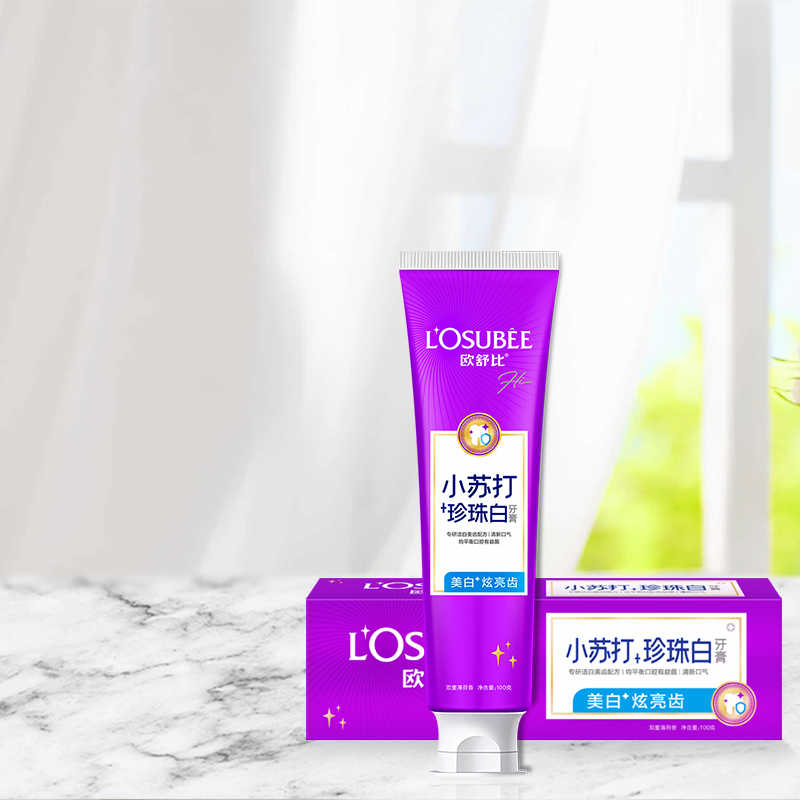 欧舒比小苏打牙膏美白炫亮齿 炫白清口气牙膏家用装100g