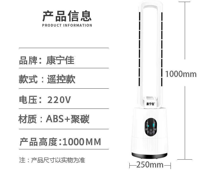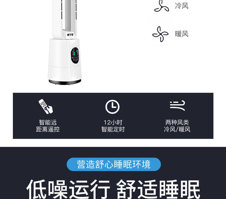 康宁佳冷暖两用塔扇1米加高取暖器无叶电风扇大风力暖风机电暖气落地扇电暖器 遥控款 ALS-608F (冷暖两用 冷指的是自然风,不是制冷)
