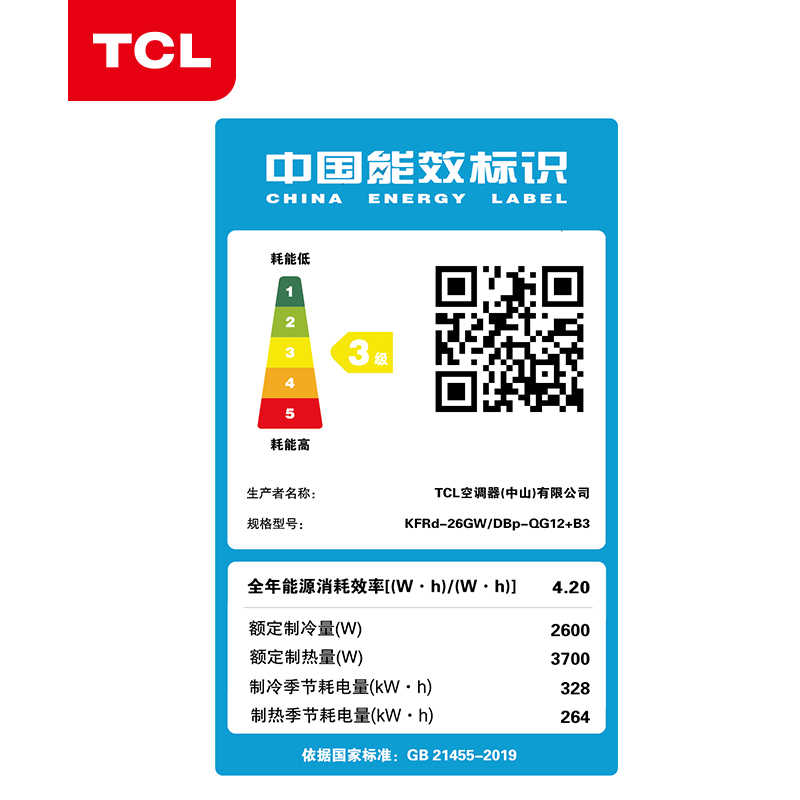 TCL 大1匹三级变频空调智能冷暖 空调挂机智能柔湿制冷 56℃高温自清洁 智能记忆功能KFRd-26GW/DBp-QG12+B3 送货上楼