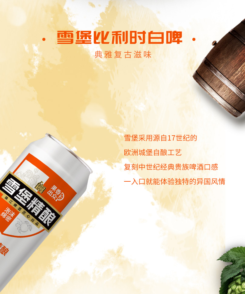 珠江啤酒SUPRA雪堡啤酒11度雪堡白啤酒500ml*12罐 /箱