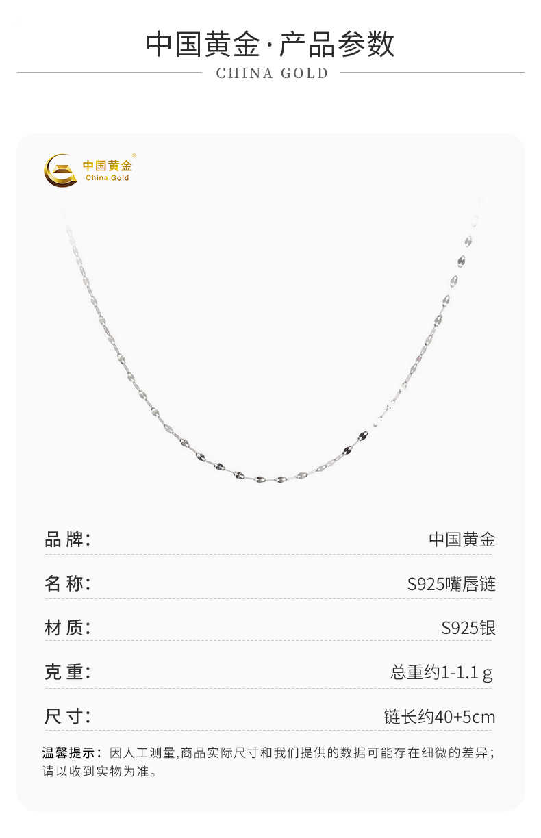 包邮中国黄金 S925银嘴唇链ZGHJ220690 (支持线下验货) 【新疆西藏不发货】