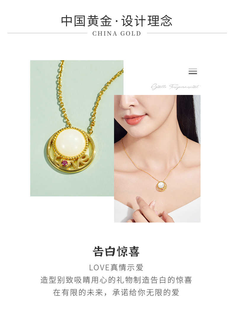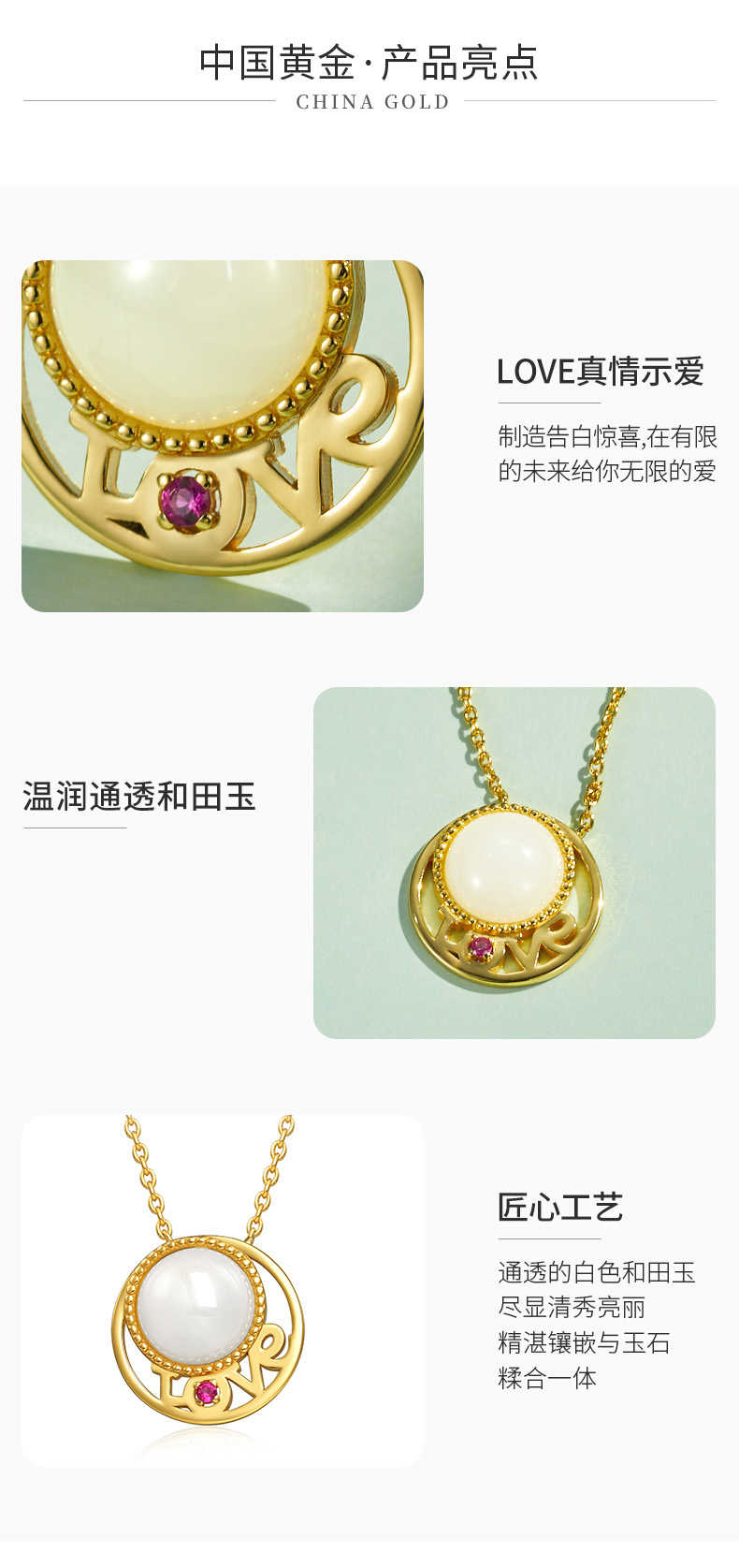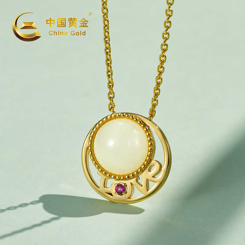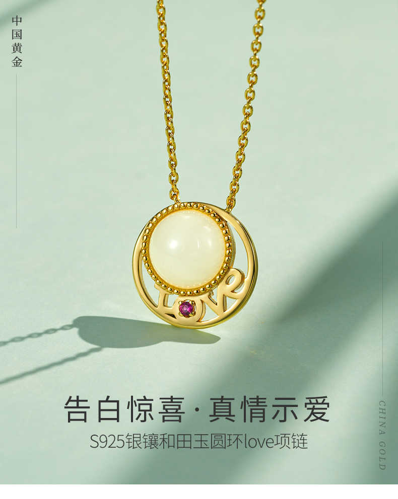 包邮-中国黄金 S925银镶和田玉圆环love项链镀金色ZGHJ220642(支持线下验货) 【新疆西藏不发货】