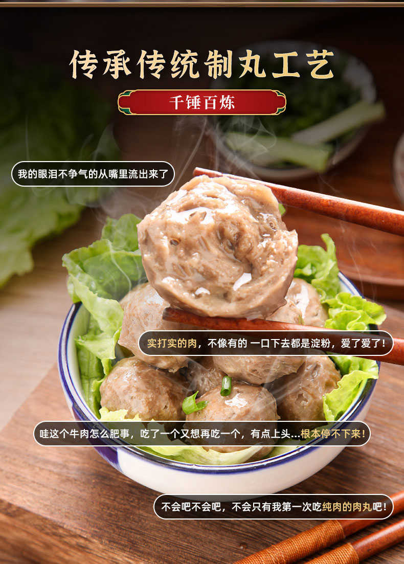 潮香铭记 2斤装 潮汕正宗风味爆汁牛肉丸250g*2袋+牛筋丸250g*2袋【新疆西藏内蒙古及疫情地区不发】