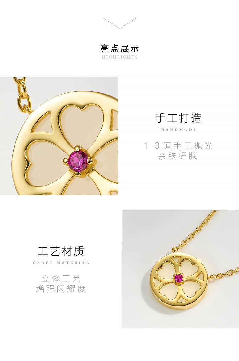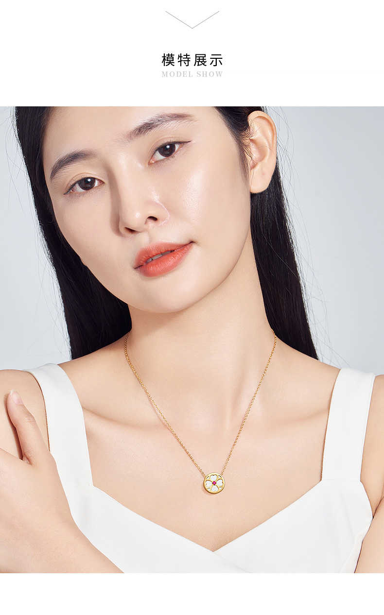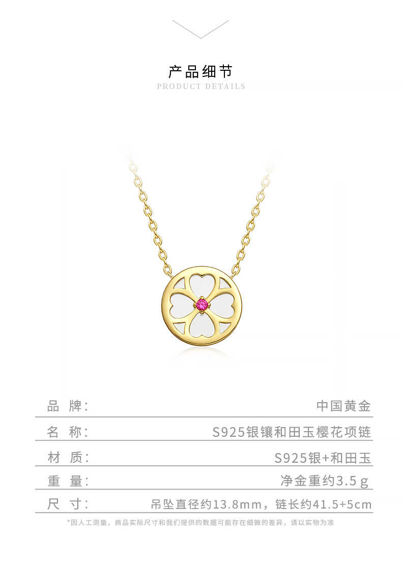 包邮-中国黄金 S925银镶和田玉樱花项链镀金色ZGHJ220641(支持线下验货) 【新疆西藏不发货】