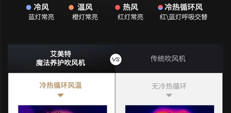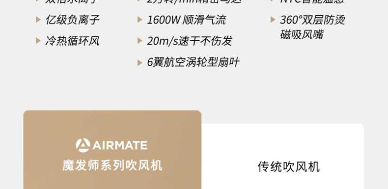 包邮-艾美特魔发师吹风机电吹风家用吹风筒负离子不伤发三种养护模式大风力速干低噪音吹风机魔发师系列吹风机GH01