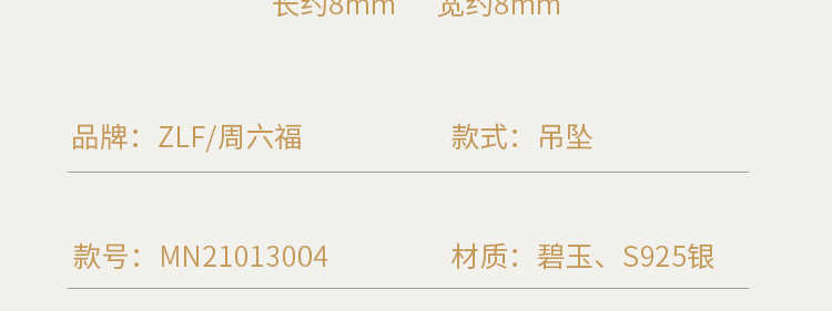 包邮-周六福碧缘S925银和田碧玉吊坠(送S925银链镀金色)支持线下验货ZLFY04942