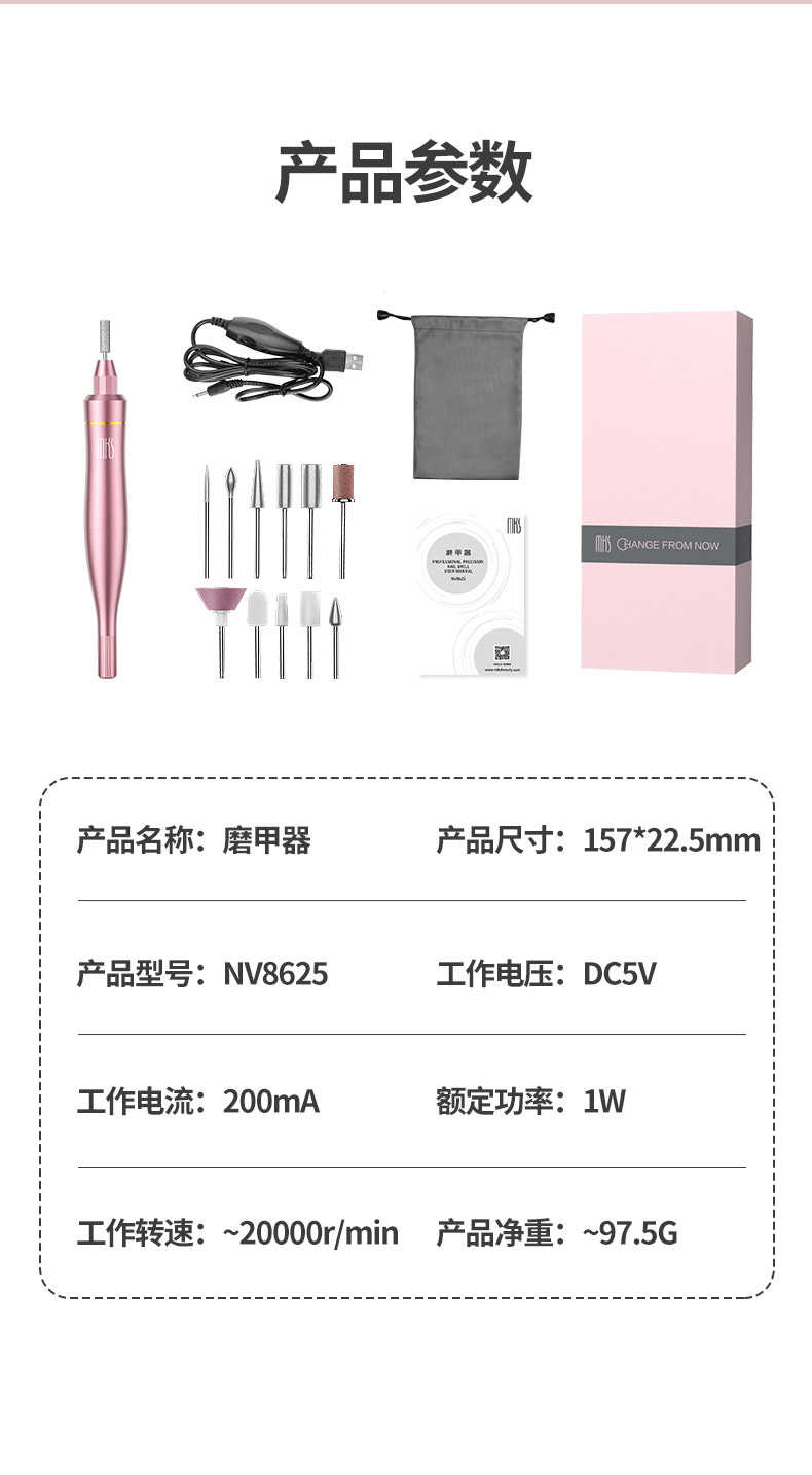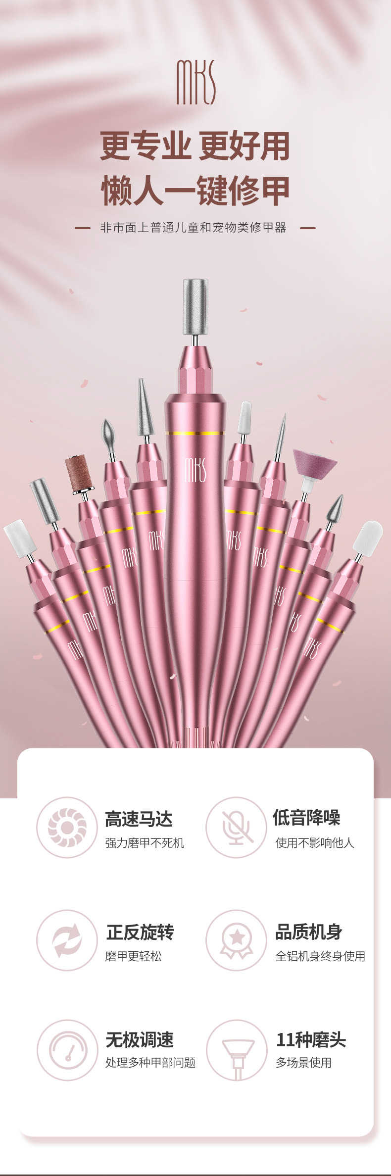 MKS/美克斯电动磨甲器修甲卸甲美甲器修指甲刀磨甲打磨笔抛光去死皮灰厚甲多磨头组合装NV8625