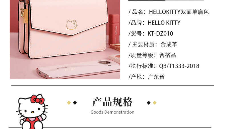 Hello Kitty Lucky 双面单肩包 粉色 女生出门链条包优雅大方简约
