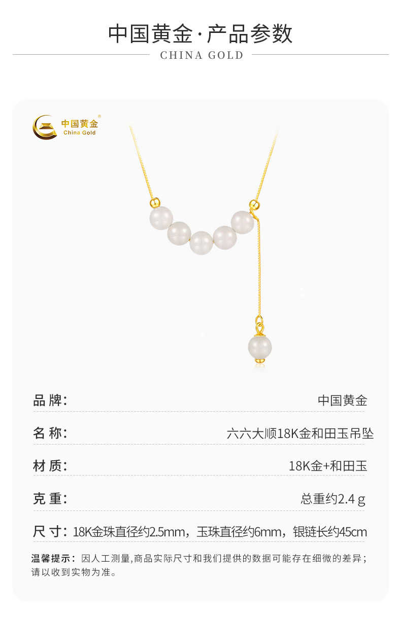 包邮-中国黄金六六大顺18K金和田玉吊坠ZGHJ220714【新疆 西藏不发货】