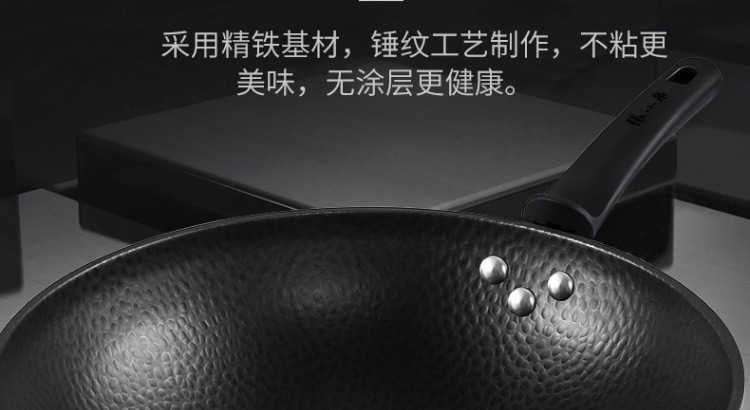 张小泉 乐家锤纹精铁锅具三件套 炒锅煎锅煤燃气灶通用汤锅