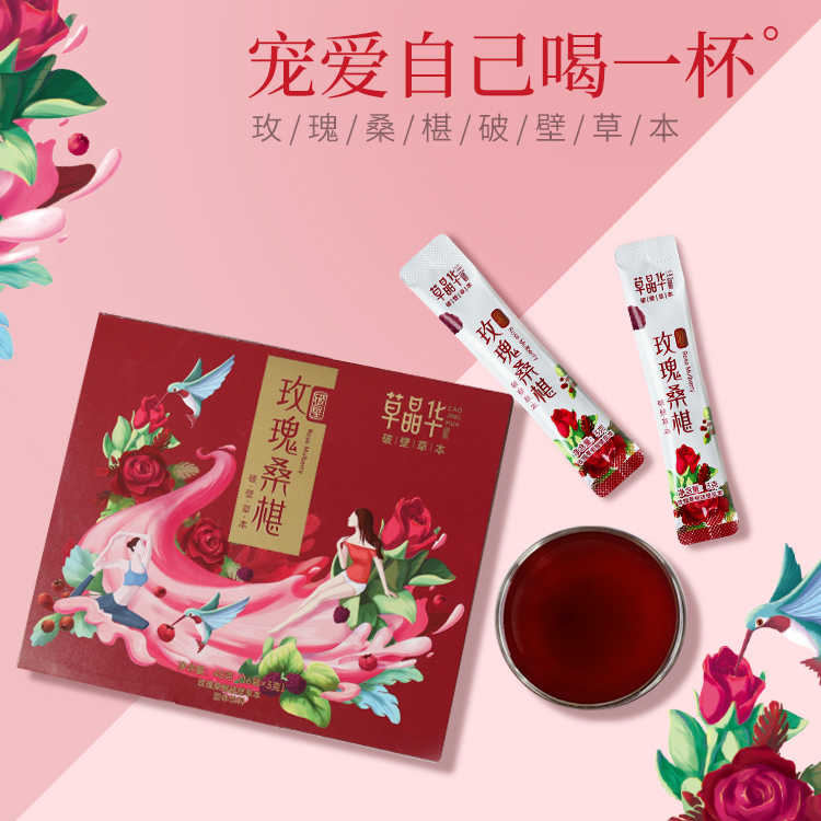 包邮-【2盒】草晶华玫瑰桑椹破壁草本女士专用养生破壁茶饮3克×16袋*2盒【新疆、西藏不发货】