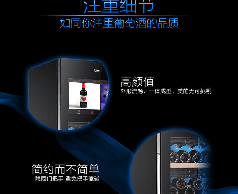 海尔 Haier 大屏智能酒柜 家用恒温恒湿红酒柜 客厅办公室葡萄酒冷藏酒柜冷柜 JC-310AU1