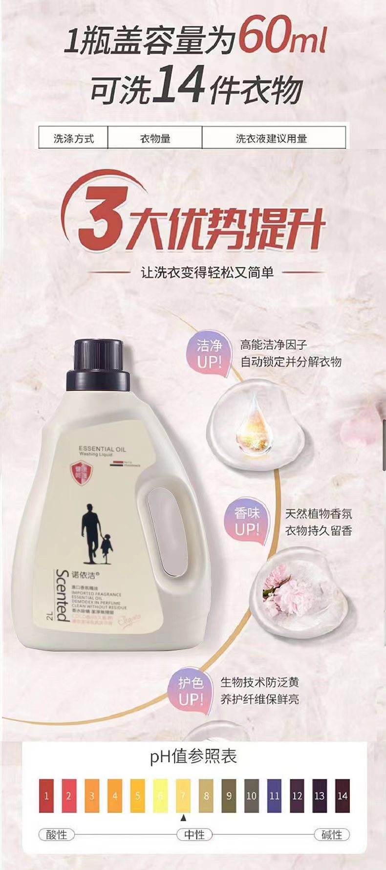 诺依洁香氛精油洗衣液2L/桶 护色洁净香氛香水除螨洁净无残留洗衣液