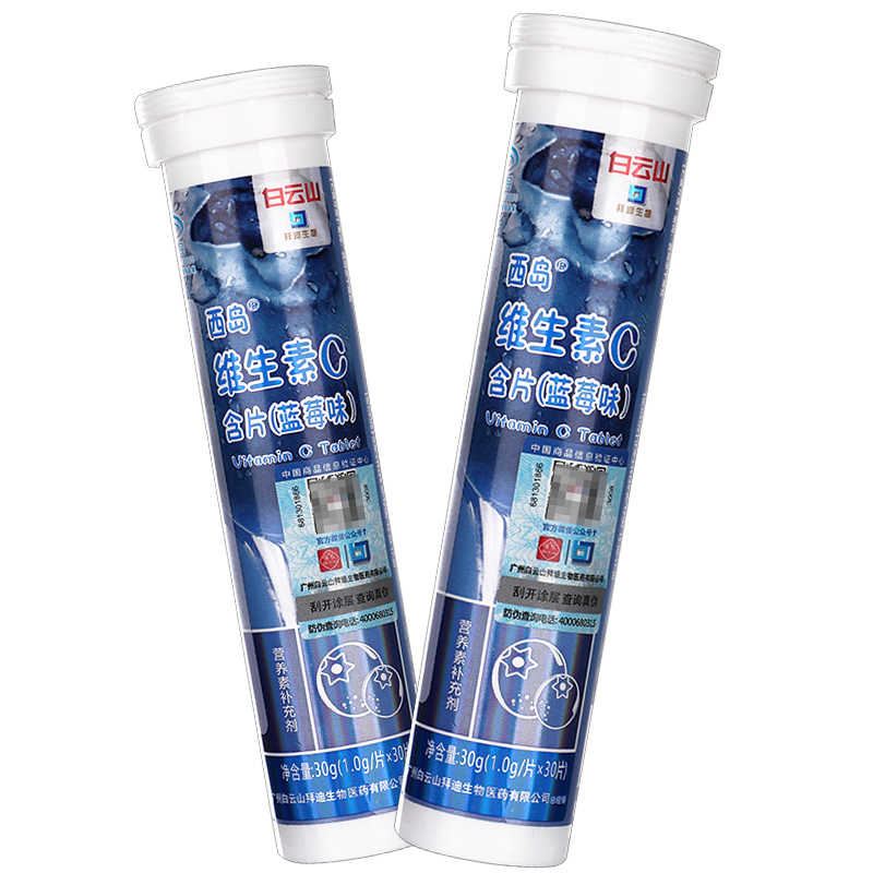 白云山西岛维生素C含片30片补充VC 甜橙 草莓 蓝莓 牛奶味 儿童孕妇乳母成人