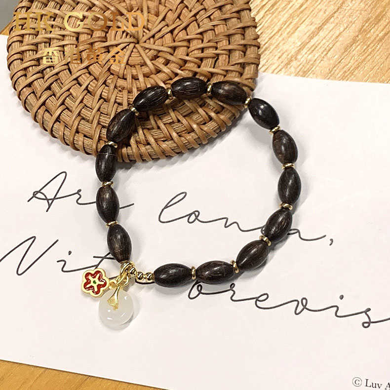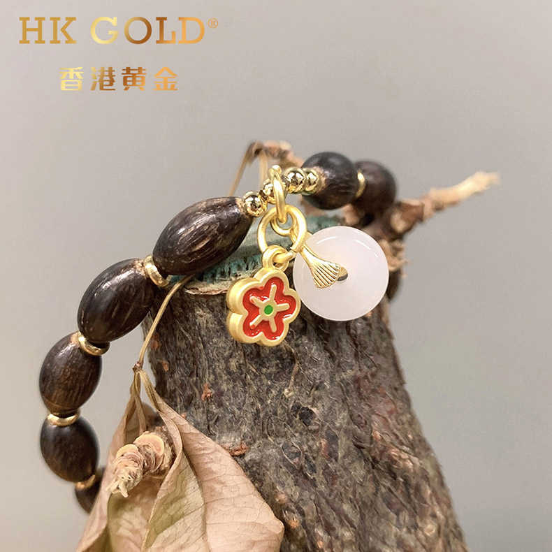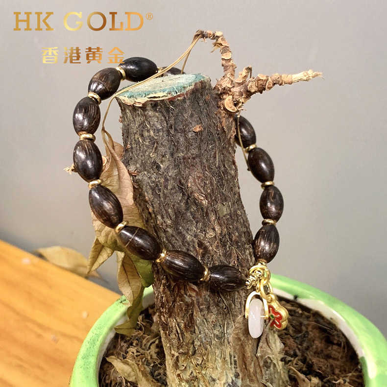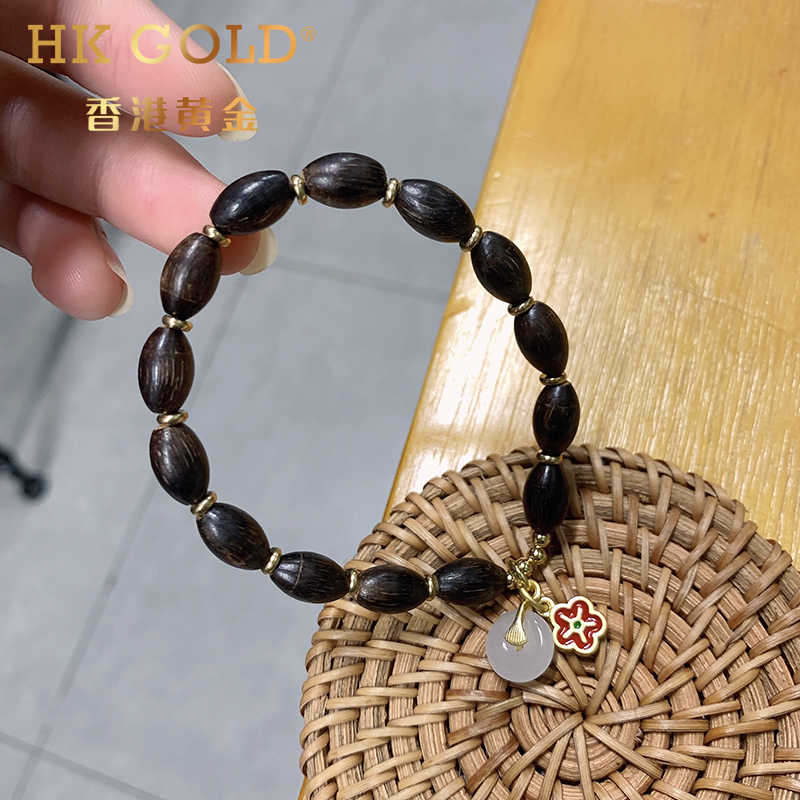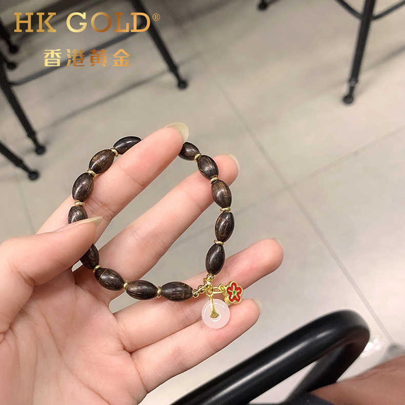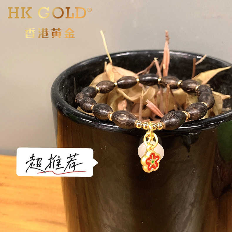 HK GOLD香港黄金 送你一朵小红花加里曼丹米珠沉香木手串CX023【新疆/西藏不发货】