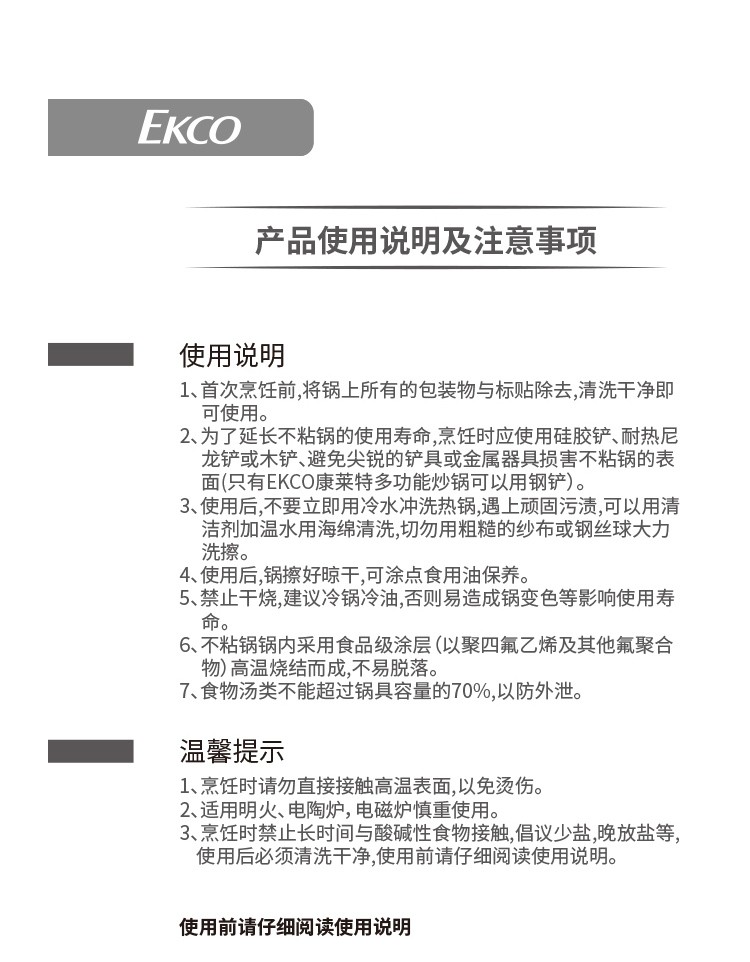 康宁厨具EKCO悦享生活锅具两件套 炒锅30cm+煎锅22cm家用多功能烹饪锅具礼盒装