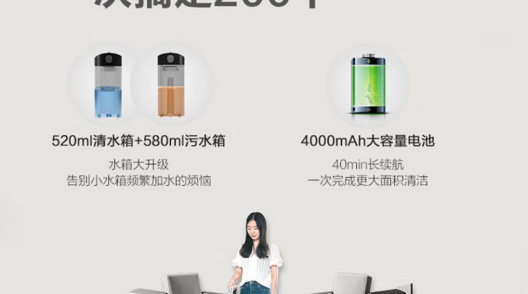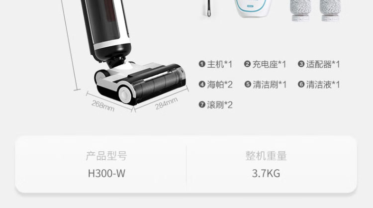 海尔Haier智能洗地机 干湿垃圾同步清理一机多用无线洗地机大容量电池H300-W