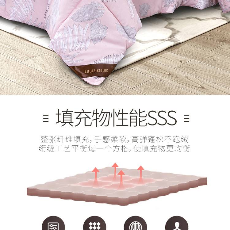 路易卡罗叶柔羽丝绒被LK-8781生态棉200x230CM