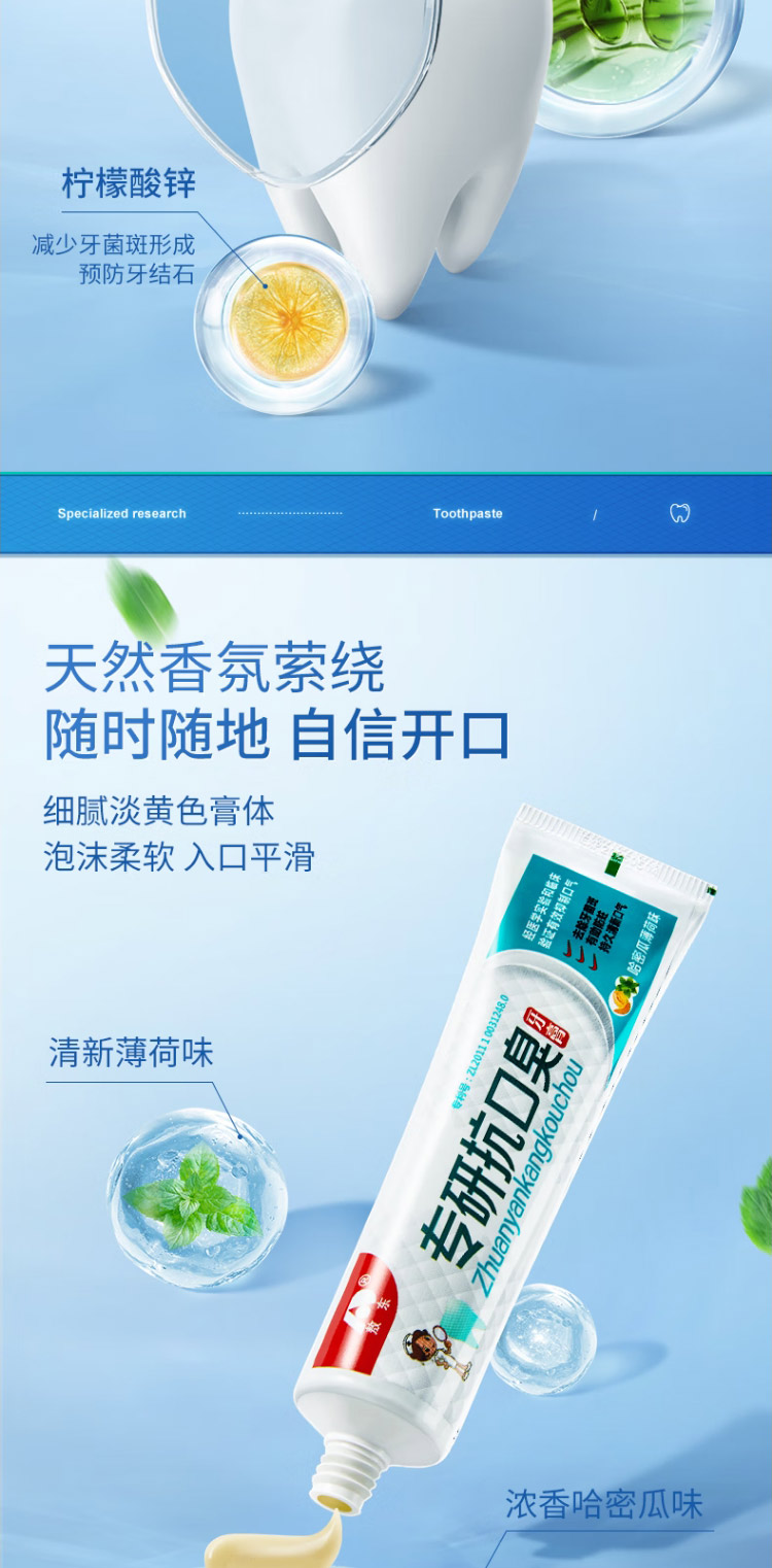 包邮-敖东专研抗口臭牙膏清新口气异味无氟防蛀清洁牙齿160g/盒